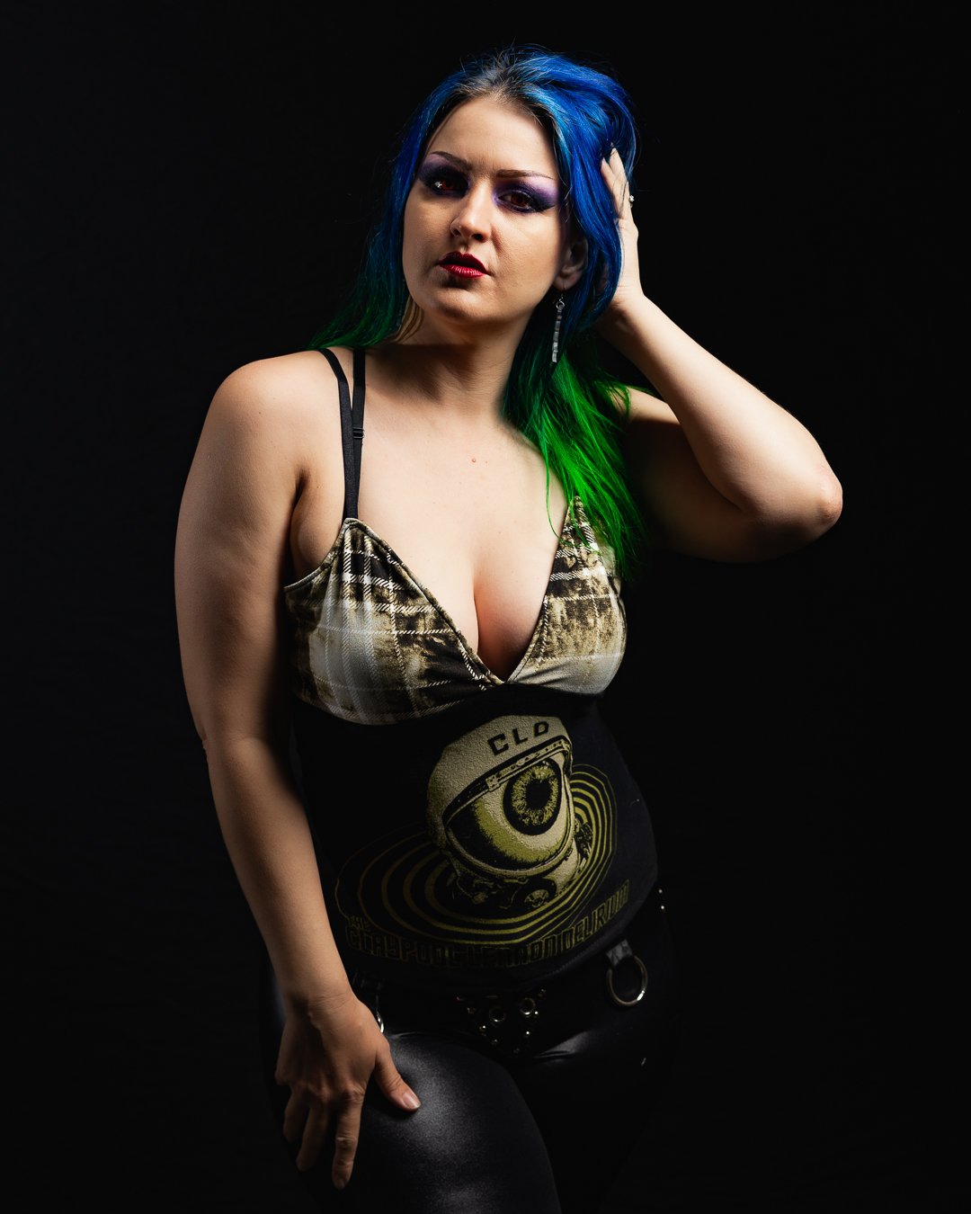 I made this using a previously owned, officially licensed Les Claypool, Claypool Lennon Delirium tee. I cut it into a cute little tank top with buttery soft olive green plaid triangle cups. I added adjustable elastic straps.