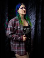 I made this using a thrifted flannel and a previously owned, officially licensed Slaughter to Prevail tee. Flannel is in good condition but is used so may have some light signs of wear. I cut out the STP graphic on the used tee and sewed it on the back of this flannel. Flannel brand is GH Bass & Co. See measurements below.