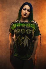 Made from a brand new, officially licensed Sleep Token tee. I reverse tie dyed the shirt using high quality dyes from Dharma Trading Co. Then i sewed it into a cute little off the shoulder tee with eyelets and black elastic. Made from a unisex medium tee.