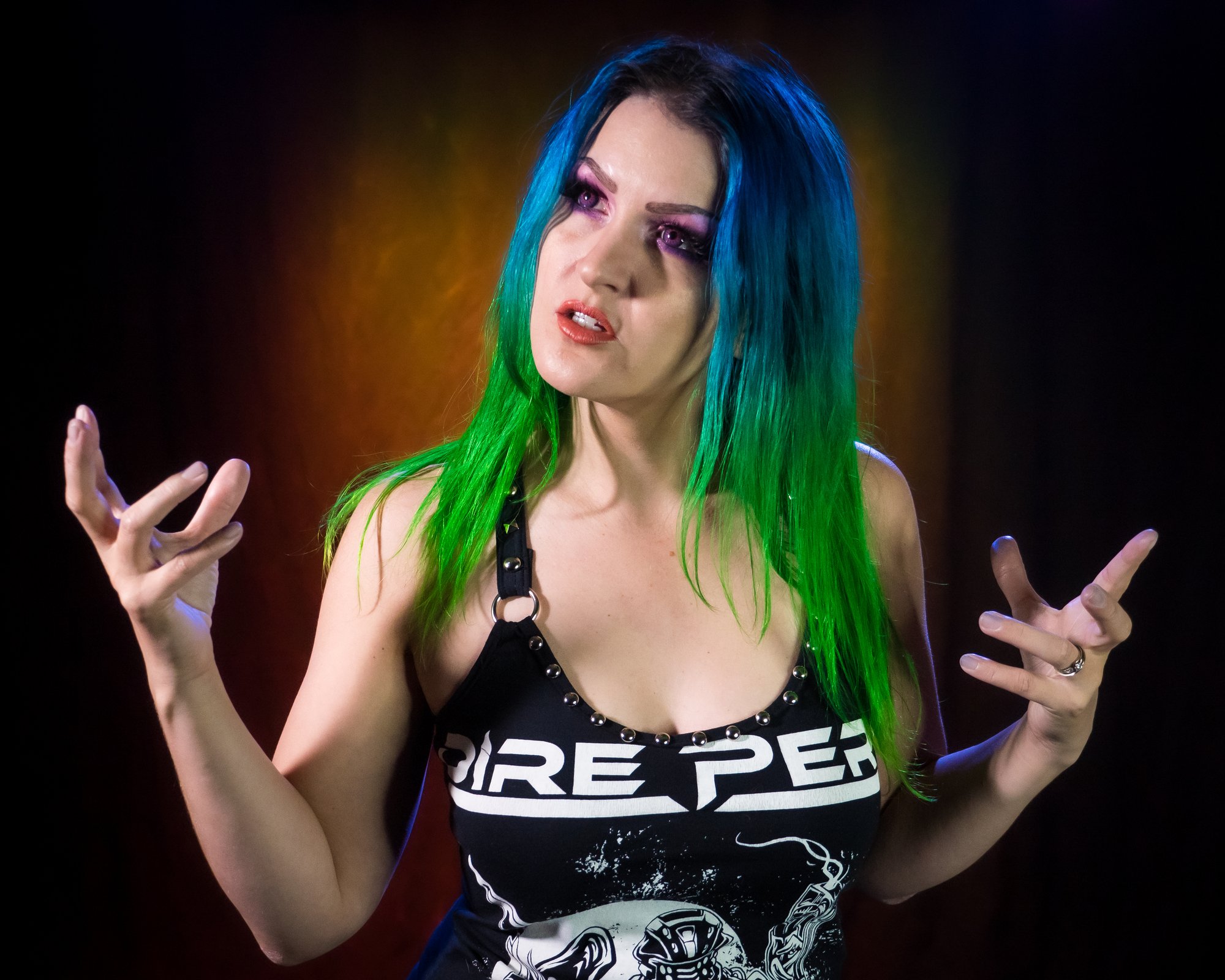 I made these using brand new, officially licensed Dire Peril merch. I cut them into tank tops and accented the neckline and straps with metal rivets and studs. I added O-rings to connect the straps. Available in 3 sizes.