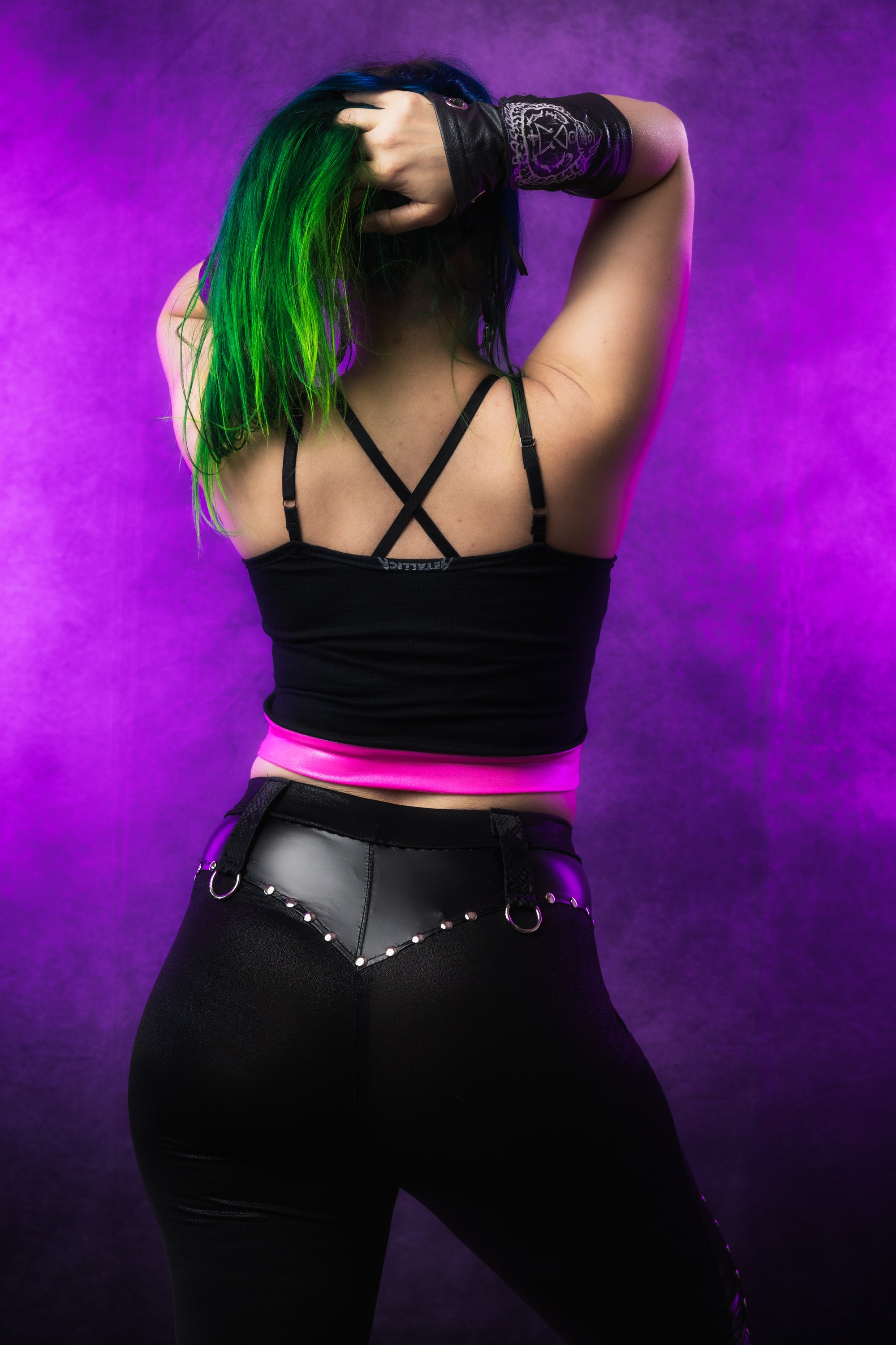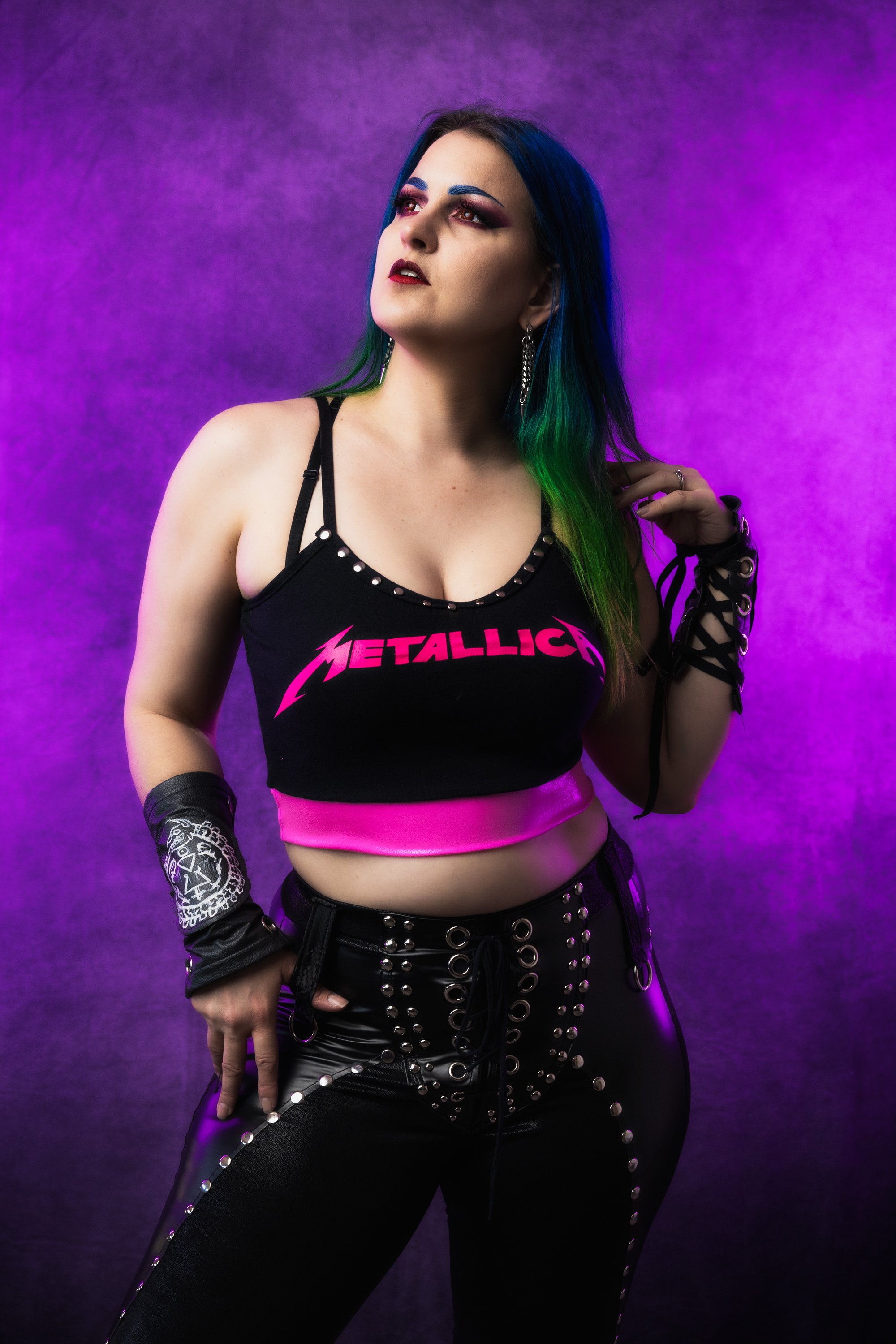 I made this using a brand new, officially licensed Metallica tee. I cut it into a sexy little crop top with a shiny hot pink spandex hem accented with metal rivets. Features adjiustable straps made from plush lingerie elastic with an adjustable sliders. I studded all along the bust.