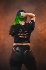I send care instructions with every purchase. Because majority of the clothing I make will have faux leather, stretch foiled fabrics, or lace/fishnet I recommend hand washing and hang drying or washing in a mesh garment bag in cold or cool water and hang drying or tumble drying with no heat. Questions? Need to see an item on a dress form in your size? Send me a message before buying