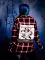 This listing is for one God Dethroned Flannel. I made this using a thrifted flannel and a brand new, officially licensed God Dethroned tee. Flannel is in good condition but is used so may have some light signs of wear. I cut out the God Dethroned graphic on the used tee and sewed it on the back of this flannel. Flannel brand is Geroge and the colors are black, white and red.. See measurements below.