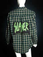 This listing is for one Slayer Flannel. I made this using a thrifted flannel and a previously owned, officially licensed Slayer tee. Flannel is in good condition but is used so may have some light signs of wear. I cut out the Slayer graphic on the used tee and sewed it on the back of this flannel. Flannel brand is St John's Bay. See measurements below.