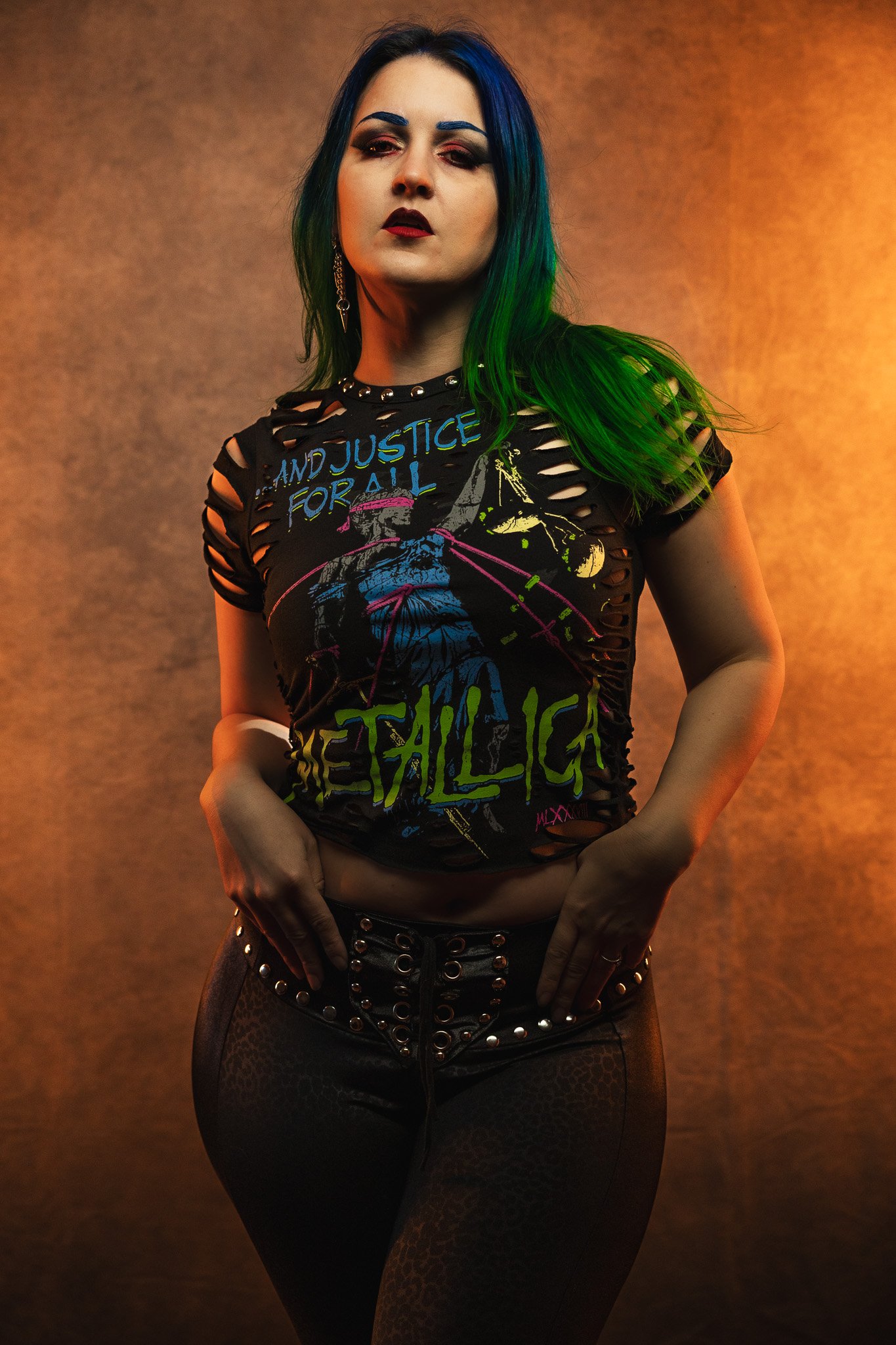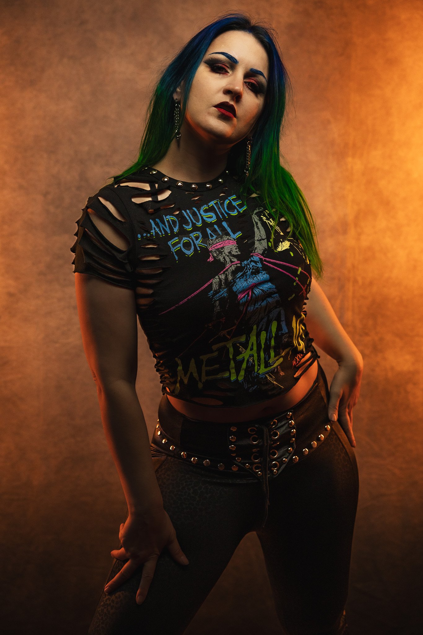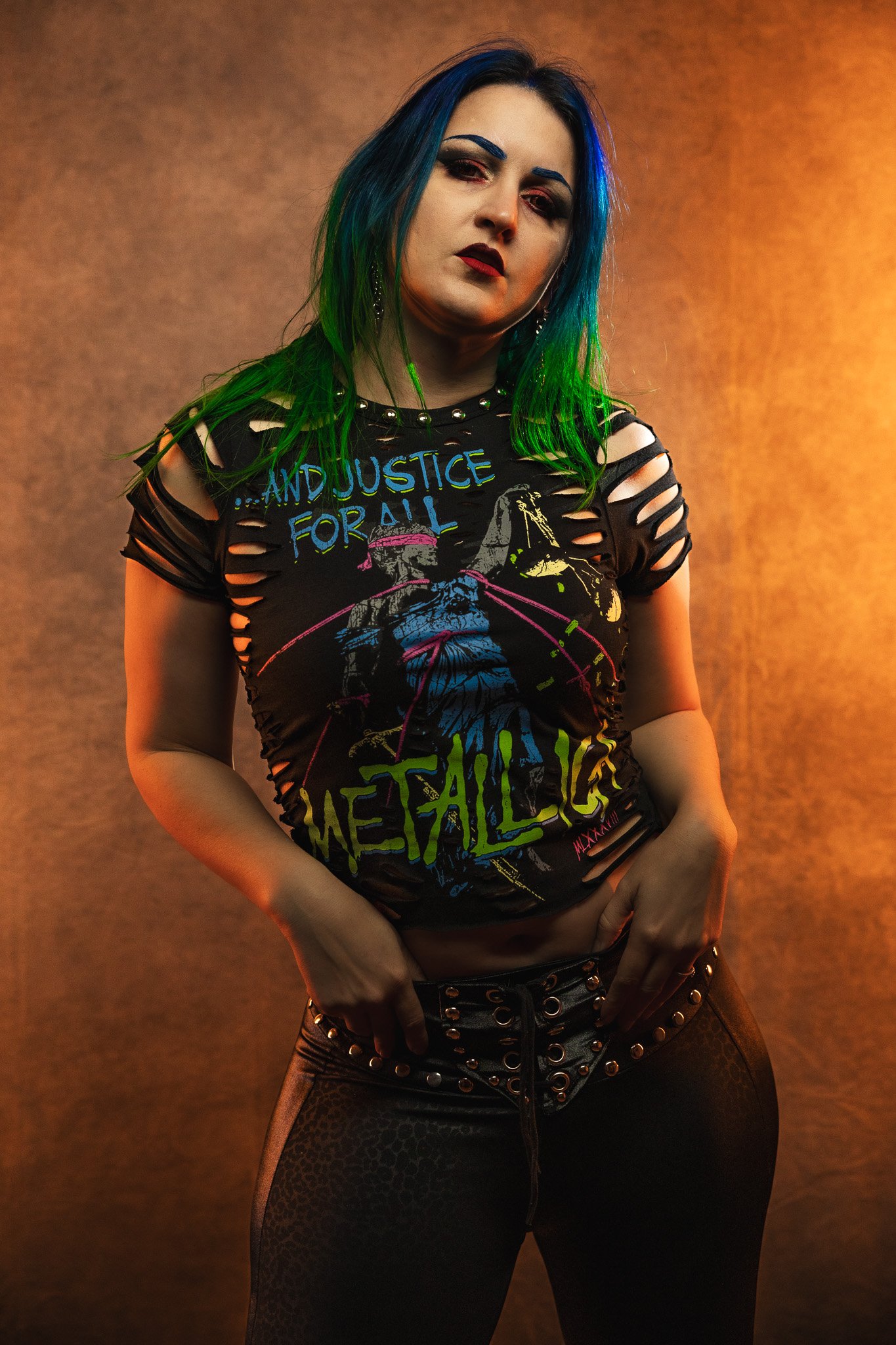 This listing is for one Metallica slashed and studded tee.